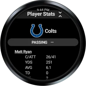 Full feature wear os app that contains:NFL scoreboardTile feature to quickly glance at updated scoresGame details - including current drive, scoring plays, and statsSchedules - all NFL teams with TV infoStandings - including playoff indicatorsTeam news - see specific news for your team as well as NFLTV schedules - Monday, Sunday and Thursday night footballGame and Player stats - For your fantasy sports teams..much more. This is a 100% wear only app. It's designed for wear and does not require a phone. Looks great on both round and square watches.Lightweight and NO ads.You buy it once and you own it. No annoying ads and no subscriptions.I built this sports app for myself originally and I welcome feed back and recommendations.All trademarks, logos and brand names are the property of their respective owners. All company, product and service names used in this app are for identification purposes only. Use of these names, trademarks and brands does not imply endorsement.