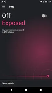 Intra protects you from DNS manipulation, a cyber attack used to block access to news sites, social media platforms and messaging apps. Intra utilizes Android's VpnService to create a secure tunnel that intercepts and encrypts your DNS queries, preventing manipulation by malicious actors. This also helps protect you against some phishing and malware attacks. Intra couldn’t be simpler to use — just leave it on and forget about it. Intra won’t slow down your internet connection and there’s no limit on data usage. While Intra protects you against DNS manipulation, there are other, more complicated blocking techniques and attacks that Intra doesn't protect against. Learn more at https://getintra.org/. Features • Free access to websites and apps blocked by DNS manipulation • No limits on data usage and it won’t slow down your internet connection • Keep your information private — Intra doesn’t track the apps you use or websites you visit • Customize your DNS server provider — use your own or pick from popular providers • If any app isn't working well with Intra, you can disable Intra just for that app • Open source