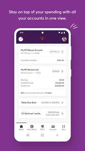 The PC Financial Mobile app is a convenient online baking tool. Users can manage their credit cards, bank accounts and transaction records in this app anywhere and anytime. Users can also gain personalized insights into their spending and set custom alerts with just a few taps.