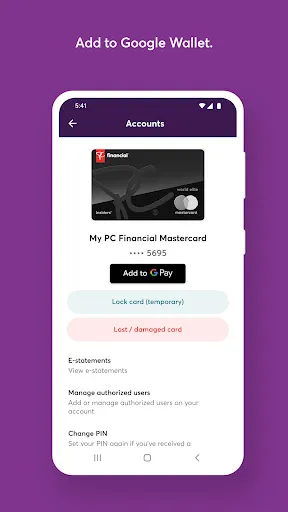 Sign in easily with a fingerprint or facial recognition. Download the PC Financial app now and manage your PC Financial Mastercard information and your PC Money Account.