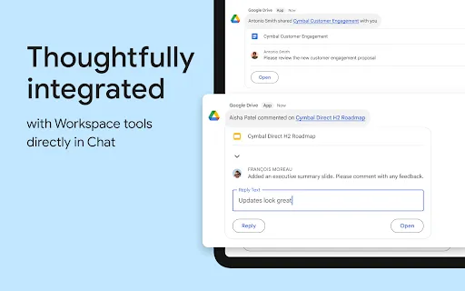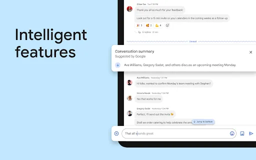 As part of Google Workspace, Google Chat is an intelligent and secure communication and collaboration app that is especially built for teams. From ad-hoc messaging to topic-based workstream collaboration, Chat makes it easy to get work done where the conversation is happening.